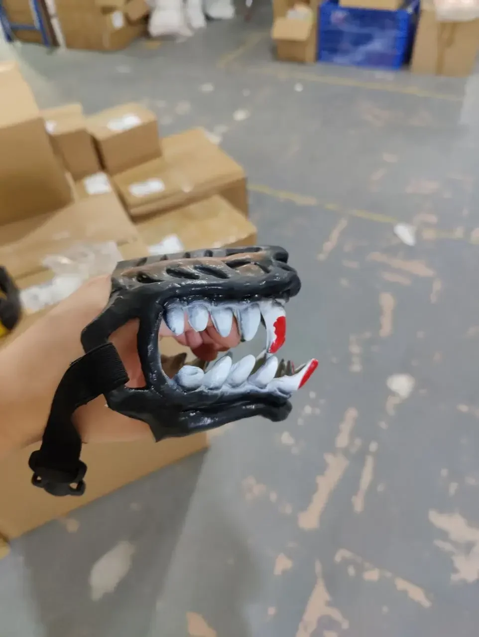 Cette muselière de déguisement pour chien en latex est conçue exclusivement comme accessoire festif ou visuel.