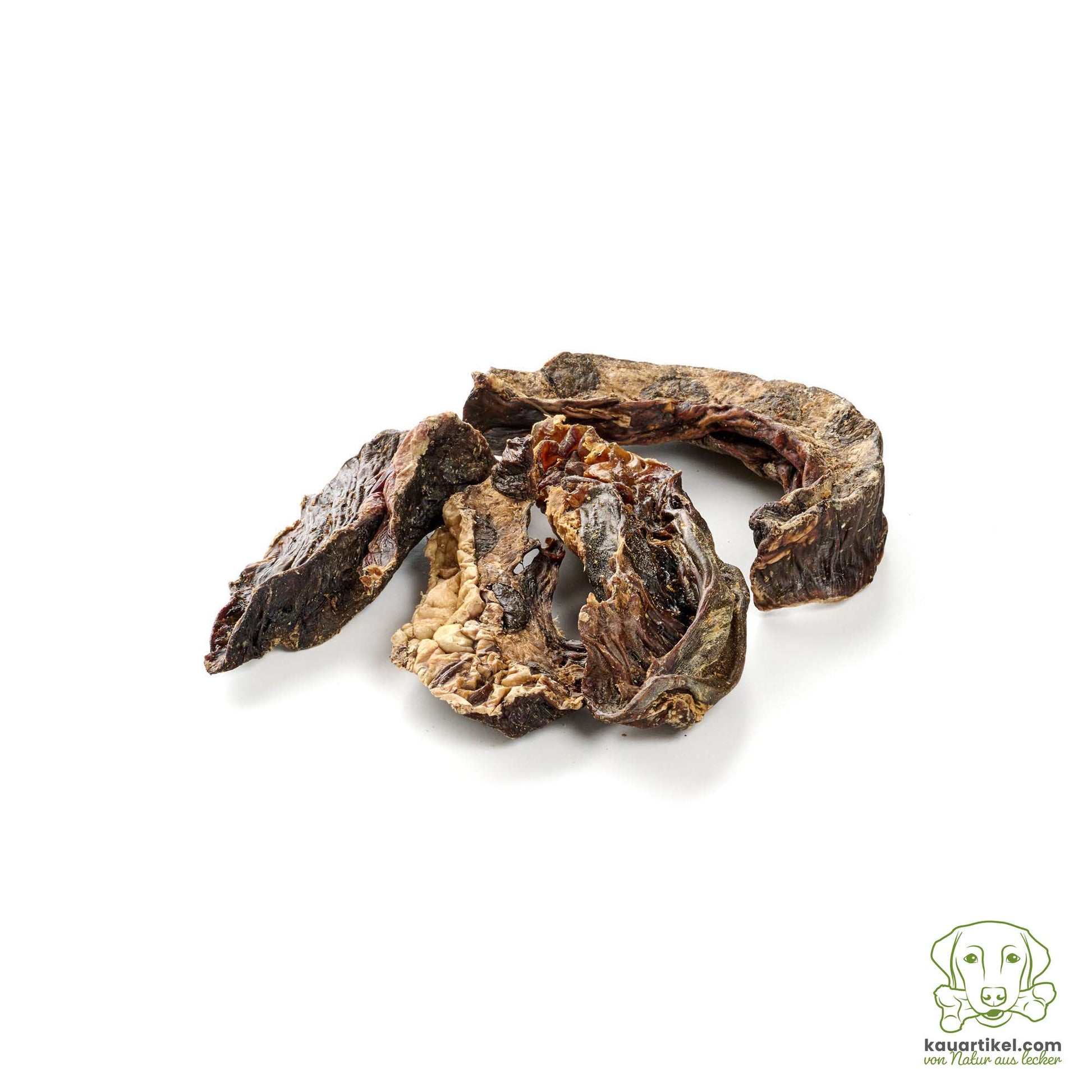 Notre produit « cœur de bœuf séché » pour chiens est composé à 100 % de viande musculaire pure, sans aucun additif. Sa teneur élevée en protéines brutes et faible en graisses en fait une friandise à mâcher particulièrement saine et naturelle, qui fera battre plus vite le cœur de votre chien.