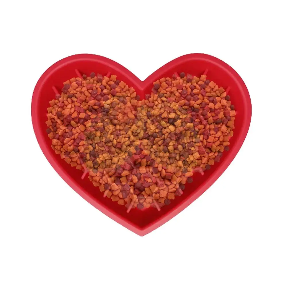 Gamelle anti-glouton en silicone – Forme cœur, antidérapante avec ventouses