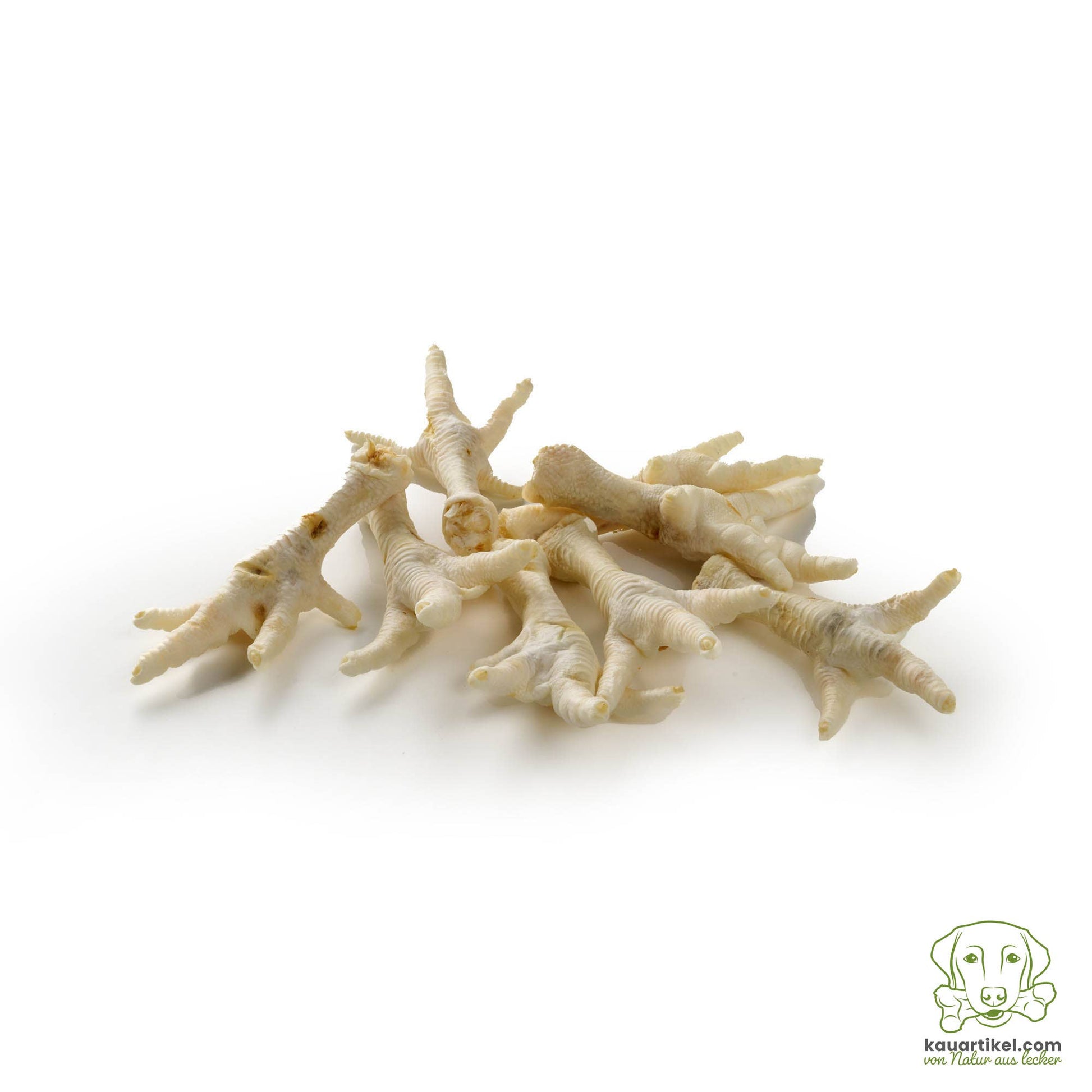Pieds de poulet fabriqués à partir de produits crus fraîchement abattus, dégraissés et doucement séchés à l'air.