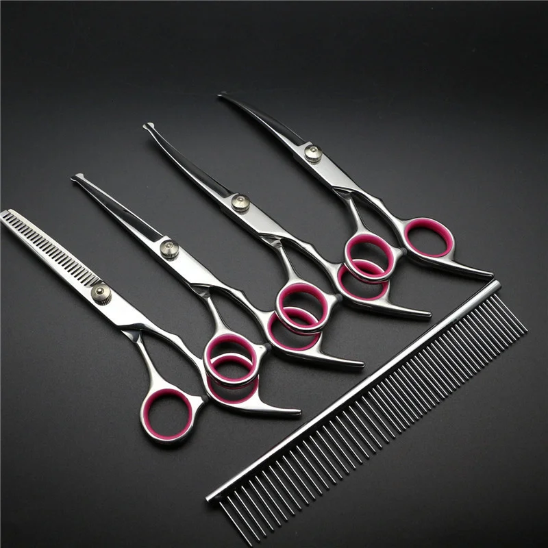 Safe Stainless Steel Pet Scissors for Dog Grooming Comfortable Rounded Tips Curved Dog Scissors Kit Tools Gift Comb