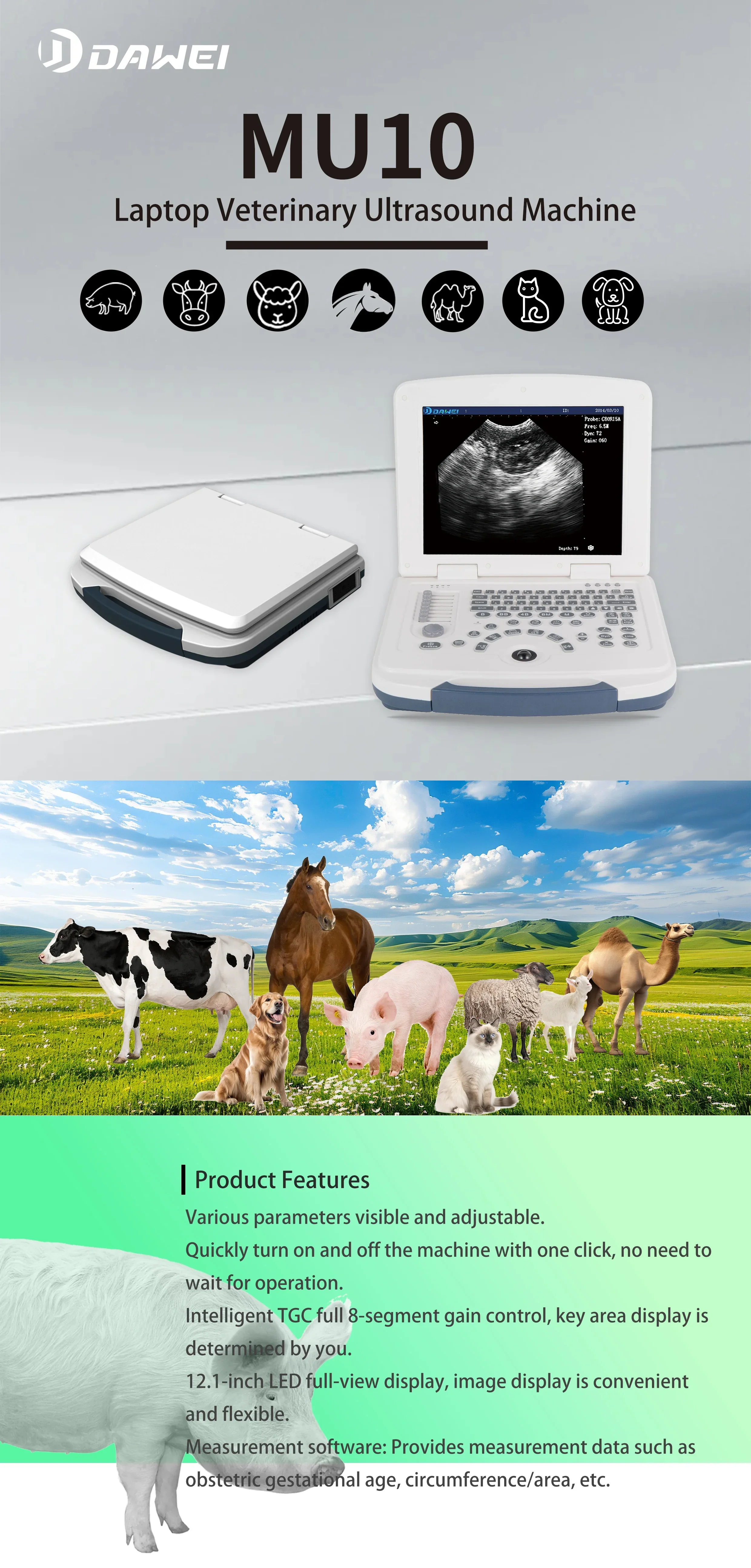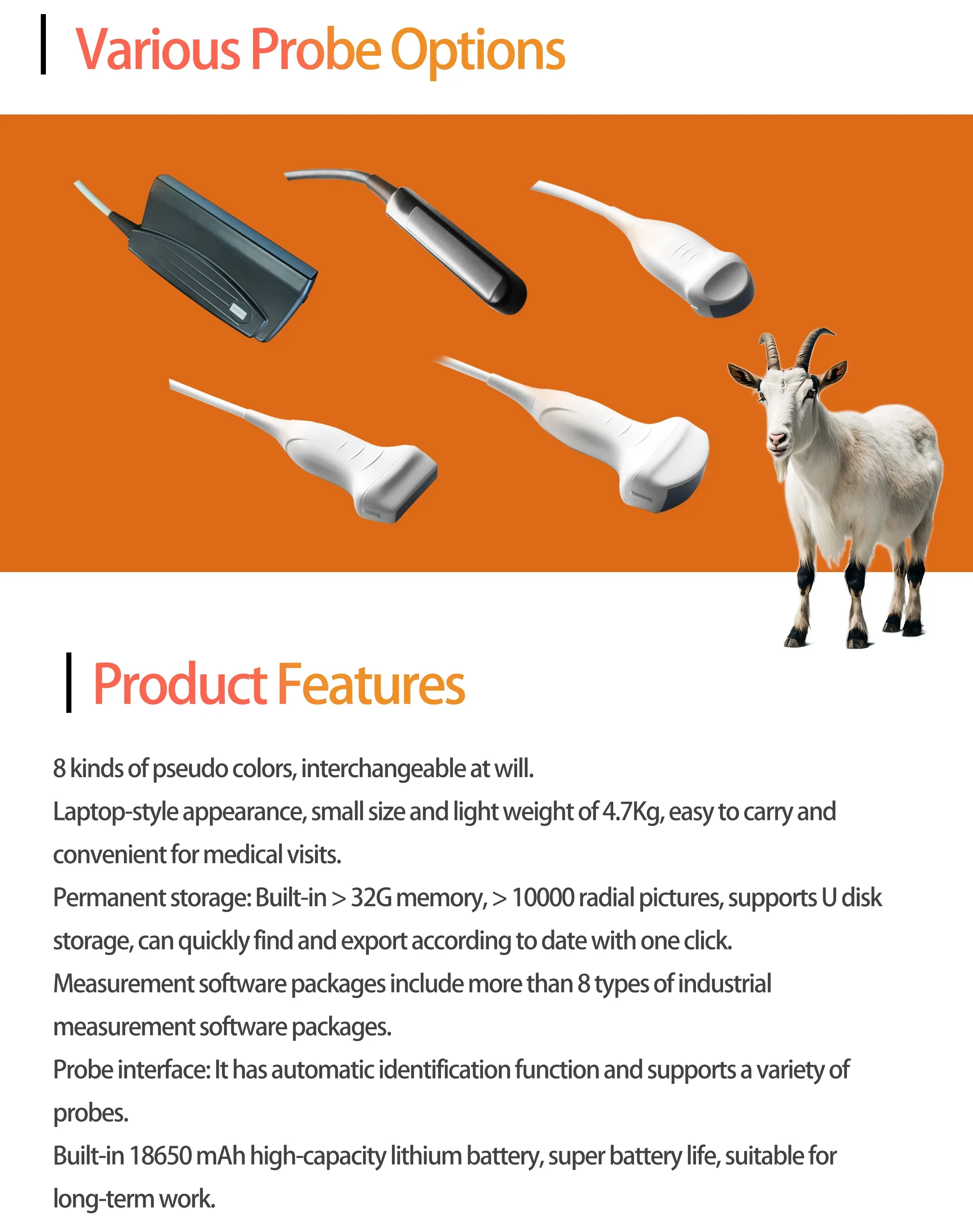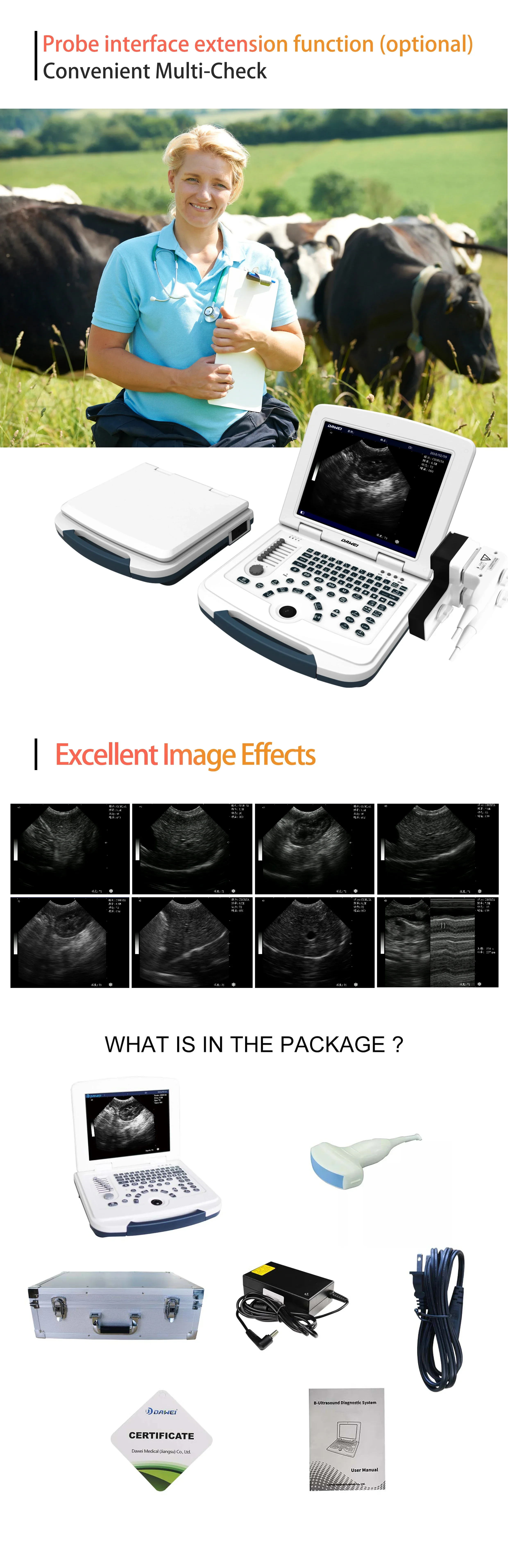 Appareil d’échographie portable avec écran – Scanner de visualisation interne pour animaux avec sondes interchangeables (B, BB, 4B, B+M, M)